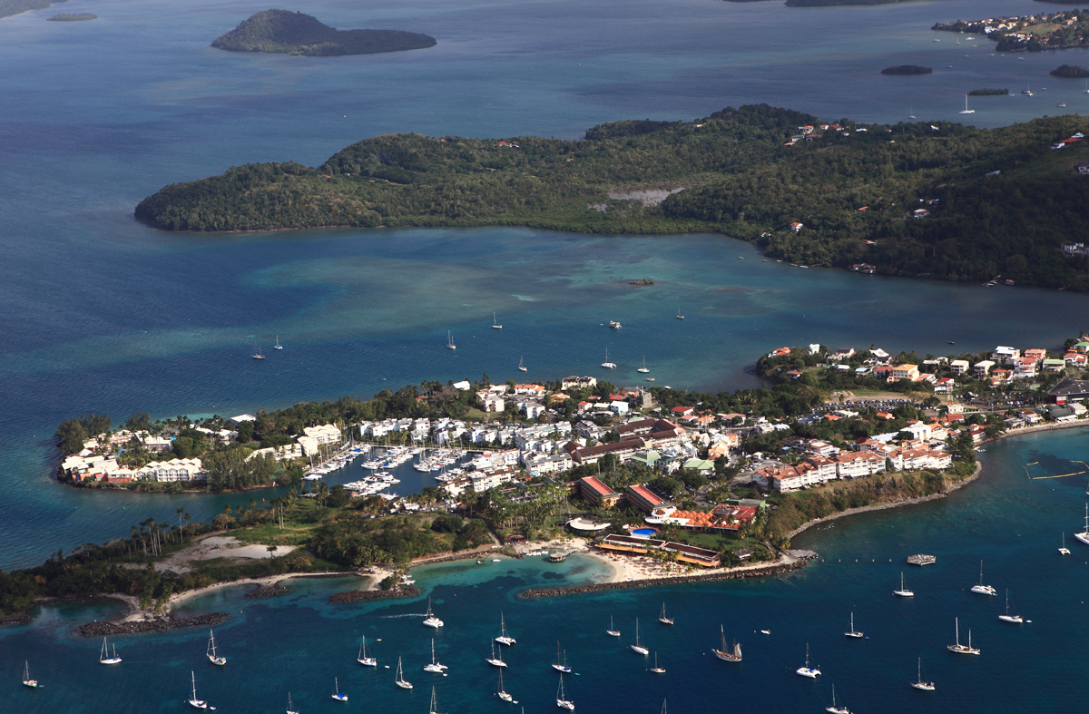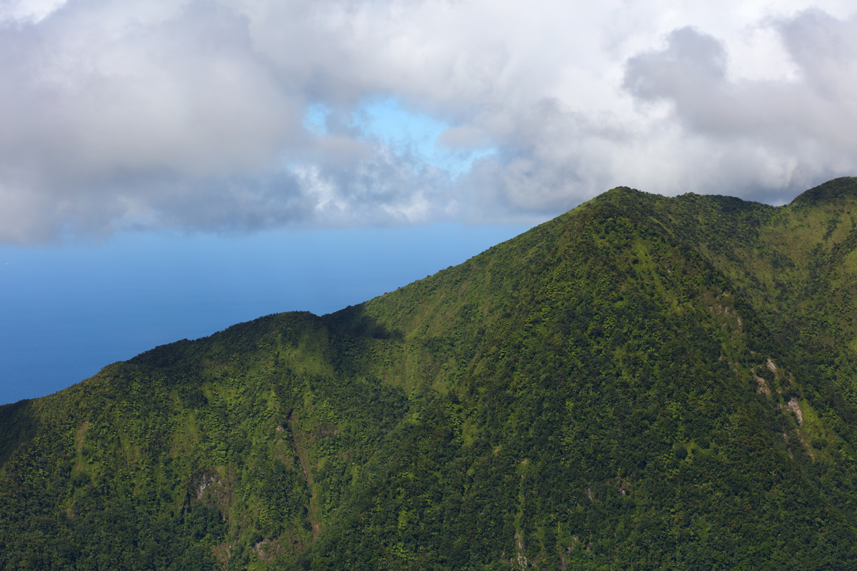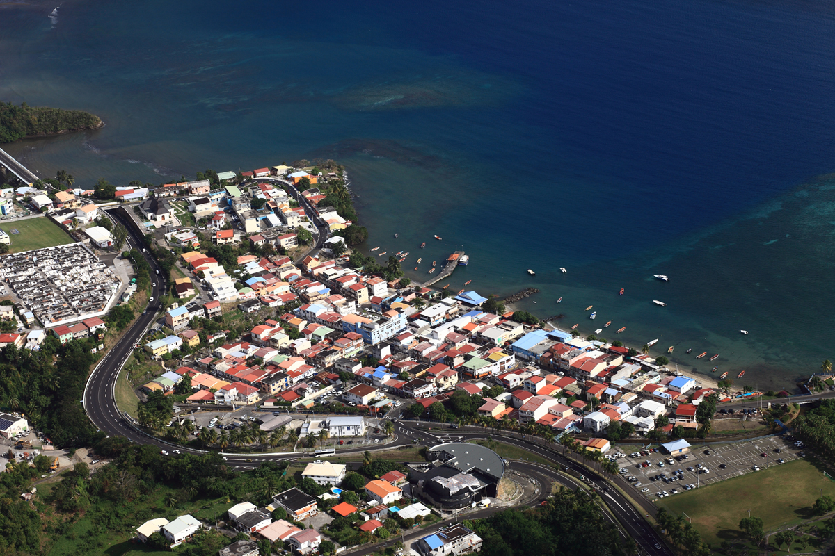 LA MARTINIQUE vue du ciel, « une belle île en mer » comme le dit la chanson. Je dirai même qu’elle est une très belle île baignée par l’océan Atlantique à l’est et la Mer des Caraïbes à l’ouest. Quand on la survole pour la première fois on est surpris de ne découvrir que peu de zones plates. En plus du volcan La Montagne Pelée qui culmine à 1.397 m, elle est parsemée de pics et de nombreuses collines que l’on appelle içi les mornes.